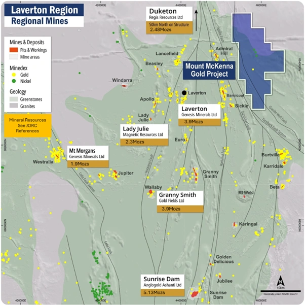 Figure 1: Regional location map of the Mt McKenna Gold Project within the Laverton gold district. [Platina Resources]