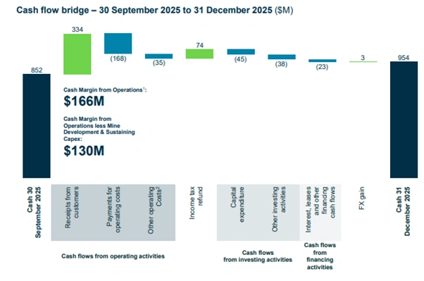 The financial strength has increased significantly during the quarter. The operation cash margin reached six figures of 166M. That was in comparison with $8M before. Cash balance rose by 12% to $954M by the end of 31 December 2025.