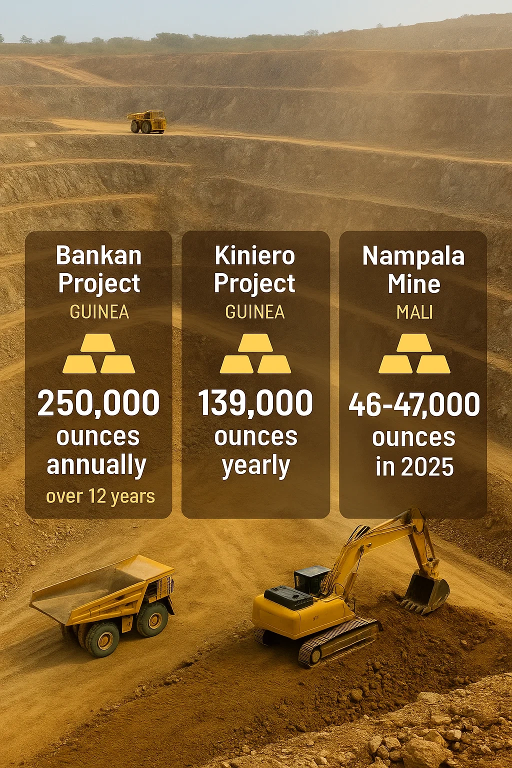 • Kiniero Project (Guinea): Robex’s construction-stage project scheduled for first gold production in December 2025, targeting 139,000 ounces yearly