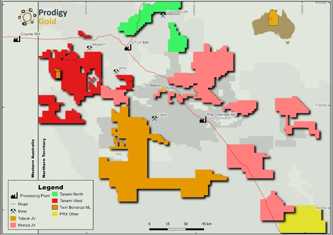 Figure 1: Location of Prodigy Gold’s Mineral Resources across the Tanami North Project area [Prodigy Gold]