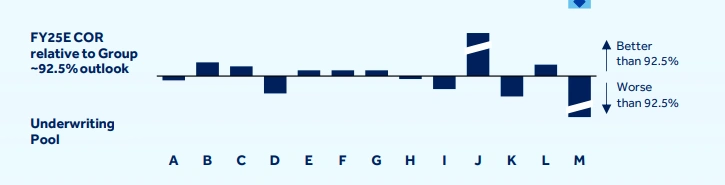 Figure 4: FY25 expected COR by underwriting pool versus the Group’s ~92.5% outlook.