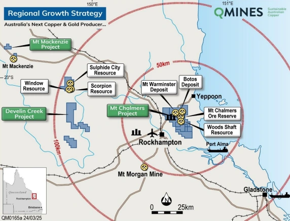 The total supports QMines’ goal of establishing a long-life, centralised production facility and sustainable copper-gold operation in Queensland.