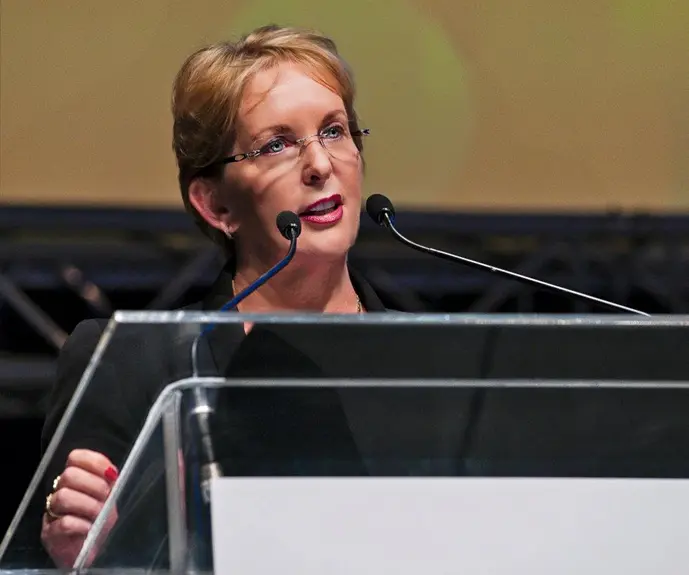 Figure 2: Queensland Minister Ros Bates speaking at a public event, announcing support for women in the resources sector [Courtesy: Wikimedia Commons]