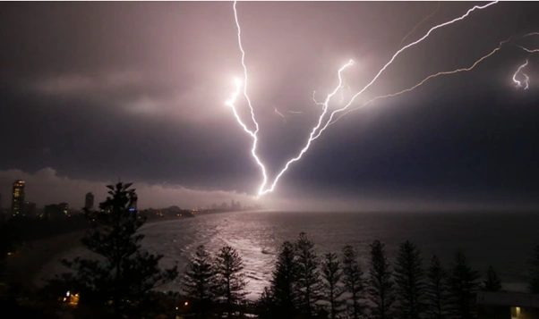Figure 3: Lightning strikes light up the sky over the Gold Coast during severe thunderstorms.