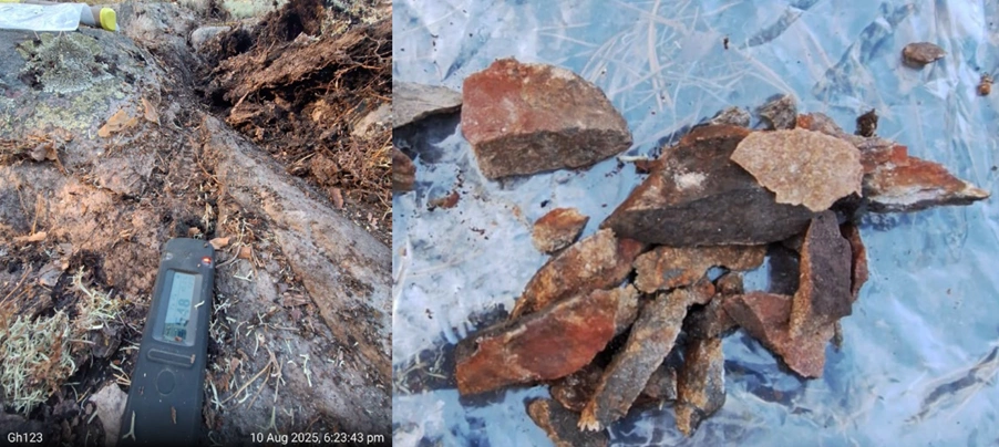 Ragnar’s fieldwork was guided by handheld scintillometer readings, proving highly effective in identifying radioactive zones. The scintillometer detected radioactivity across zones up to 3 metres wide associated with the shear structure.