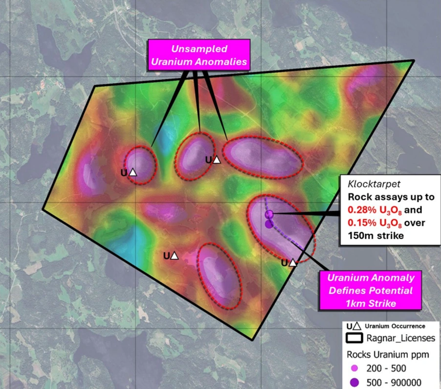 Ragnar Metals’ Klockartorpet discovery comes at an opportune moment as Sweden opens to uranium development. The high-grade surface samples and 1-kilometre anomaly provide a compelling foundation for follow-up work.