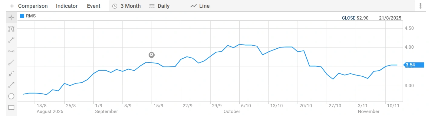 Ramelius Resources shares closed at AUD 3.545, reflecting a market capitalisation of AUD 6.83 billion. The stock has traded in a 52-week range of AUD 1.930 to AUD 4.180 per share.