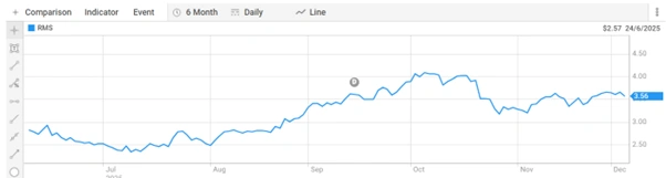 Figure 4: Six-month share price chart of Ramelius Resources (ASX: RMS)