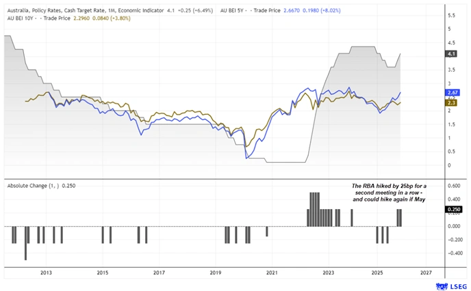 The conflict in the Middle East has resulted in sharply higher fuel prices, which the Board flagged as a material risk to the Australia cash rate forecast if sustained. Short-term inflation expectations have already risen in response, adding urgency to the Board’s decision.