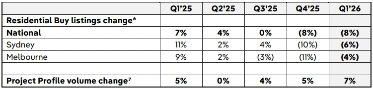 Whilst Q1 listings were softer against a strong prior year, management expects easier second-half comparables should see national FY26 listing volumes finish broadly in line with FY25.