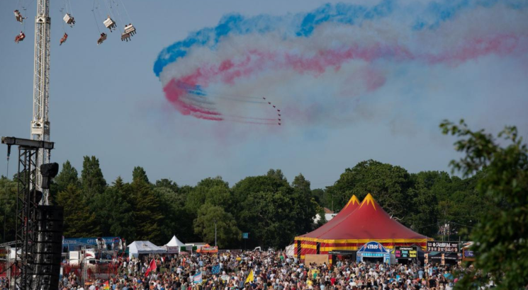 The morning session consists of a flypast across the National Memorial Arboretum in Staffordshire. The Red Arrows will be joined by a Spitfire, Hurricane, and Lancaster bomber.