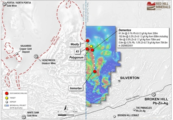 Figure 2: Broken Hill Project target location plan showing redox boundary on aeromagnetic imagery [Red Hill Minerals Limited]