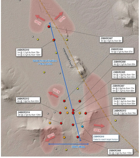 Assays included 9.0 metres at 2.4 g/t gold from 133 metres in 25BKRC008. The diamond drilling at Barkley was co-funded by the WA State Government Exploration Incentive Scheme, with up to $180,000 covered under EIS Round 30.