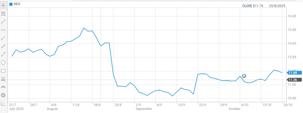Reece shares were trading at $11.86 as of 20 October 2025, a 1.25% day decline, and their trading volume was 2.9 million shares. The Company has shown resilience in its 52-week range of the bigger market turbulence, as the Company has shown strong performance in terms of cash flow and demand consistency in the building services industry.