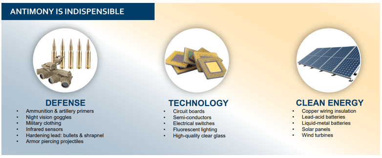 Figure 5: Antimony applications across defence, technology and clean energy sectors