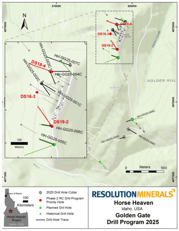 Figure 6: Golden Gate drill hole location map showing Phase 2 RC drill program and planned drill holes for 2025