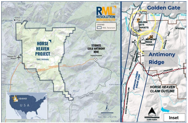 The Horse Heaven Project spans 729 federal lode mining claims covering over 14,580 acres in Idaho’s Valley County. The Project sits adjacent to Perpetua Resources Corp’s (NASDAQ: PPTA; market cap A$4 billion) Stibnite Gold Project, which is set to become one of America’s largest high-grade, low-cost gold mines.