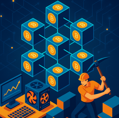 Blockchain mining is essentially a process whereby transactions on a blockchain network are duly validated. It keeps the network decentralised, secure, and transparent. Mining is about solving complicated puzzles of maths on sophisticated hardware, in particular to confirm transactions and record them.