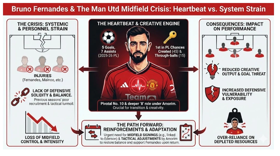Questions emerged regarding Amorim’s handling of Bruno Fernandes, United’s captain and most consistent performer. Fernandes had received a Saudi Arabian offer during the summer transfer window. The deal would have generated approximately £100 million for the club. Amorim chose to retain Fernandes, deploying him as a midfielder in his preferred formation.