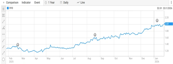Figure 3: Ryder Capital share price performance over the past year, highlighting steady upward momentum. [Australian Securities Exchange]