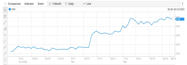 Havilah Resources shares trade at AUD 0.575 with a market capitalisation of AUD 207.60 million as on 30 Dec 2025. The stock has traded in a 52-week range of AUD 0.165 to AUD 0.630 per share.