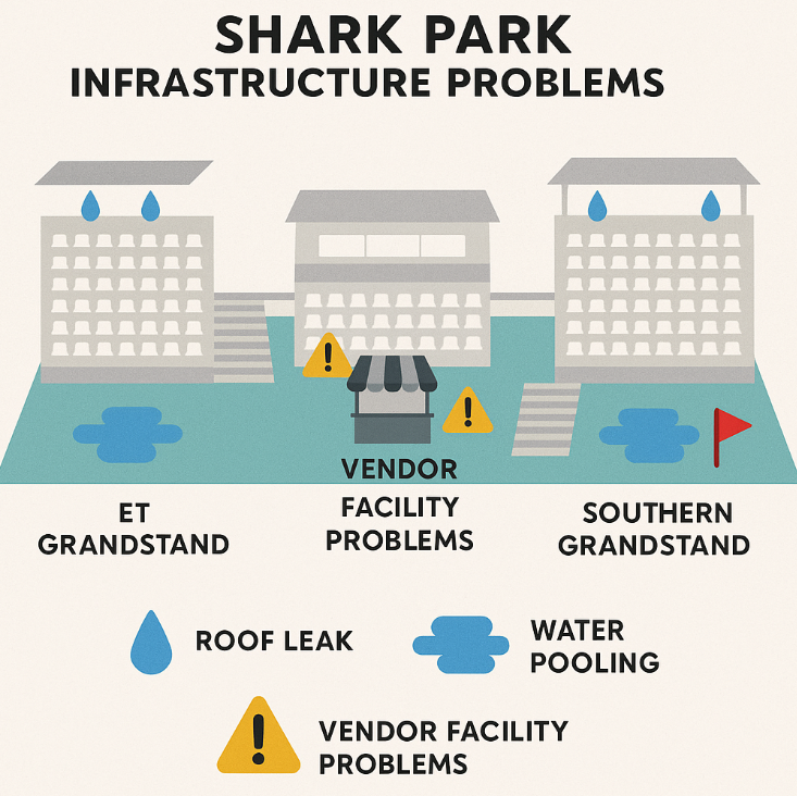 Shark Park has faced criticism for structural issues such as roof leaks and water accumulation on stairways. These problems compromise fan safety and comfort during events. Vendor amenities also lack modern standards, affecting service quality and variety. These deficiencies contribute to the venue’s tarnished reputation as one of Australia’s less favourable professional sports facilities.