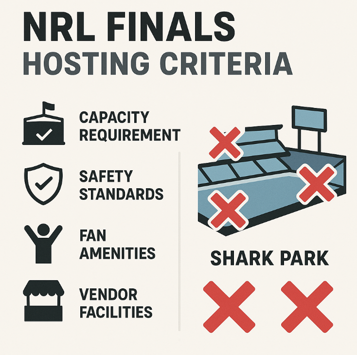 The Sharks have confirmed they intend to host home finals at Shark Park if qualified, but the venue faces capacity and facility challenges that may affect future eligibility.