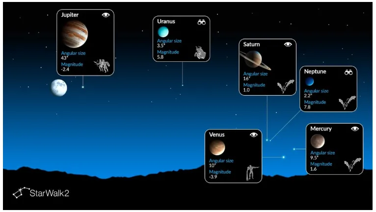 Two additional planets require optical assistance. Uranus can be found with binoculars under dark skies.