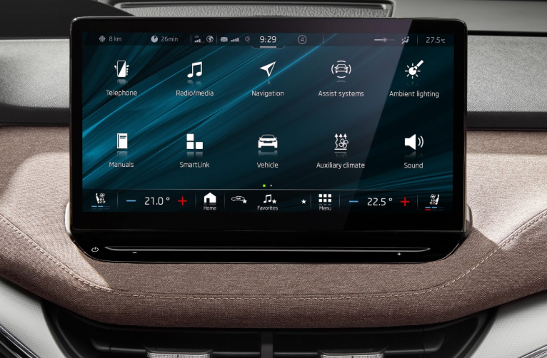 Inside the 2025 Skoda Enyaq, technology and comfort blend through a sleek digital design