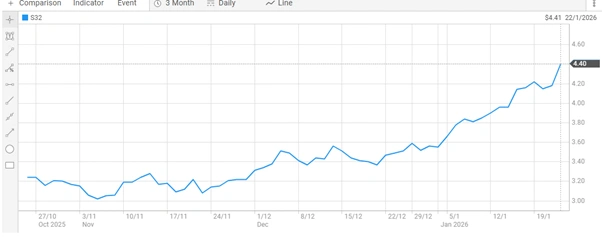 South32’s December quarter update comes at a time of heightened investor focus on base metals and energy transition commodities. Copper, in particular, has outperformed several traditional bulk commodities over the past 12 months, supported by supply-side constraints in South America and Africa, alongside rising demand from clean energy and electrification projects.