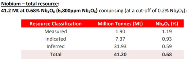 Figure 4: JORC (2012) niobium Mineral Resource Estimate summary for the Araxá Project by classification [Source: St George Mining]