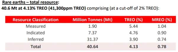 Figure 5: JORC (2012) rare earths Mineral Resource Estimate summary for the Araxá Project by classification [Source: St George Mining]