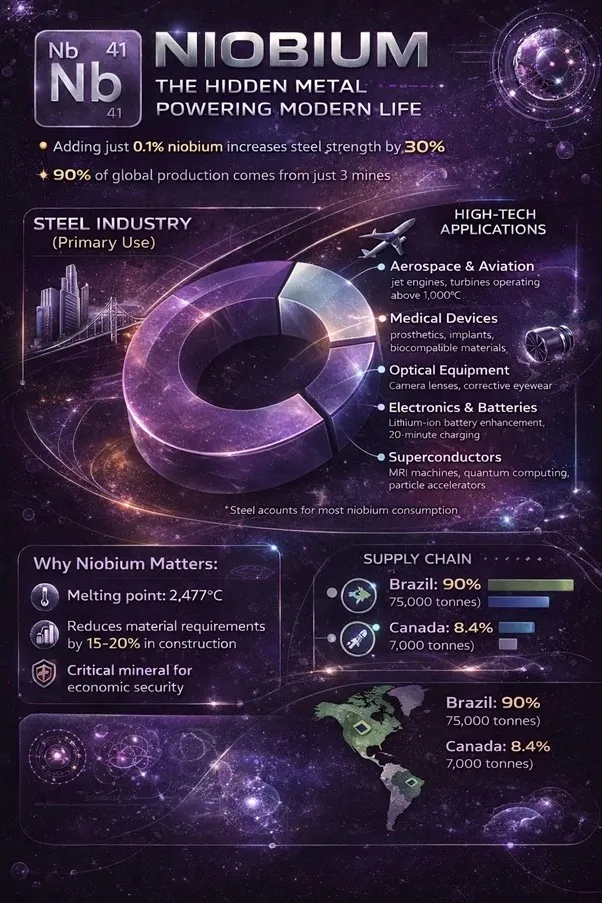 The niobium market was valued at US$3.4 billion in 2025 and is projected to reach US$6.5 billion by 2035. Brazil produces more than 90% of the world’s niobium, with neither China nor the US having a domestic supply. The metal is essential in F-35 fighter jets, aerospace applications and high-strength steel alloys.