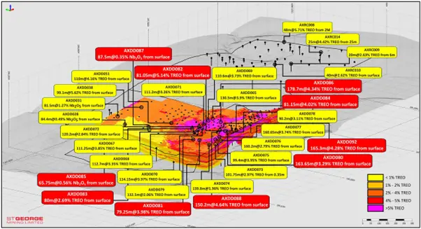 - 165.3m at 4.28% TREO and 0.61% Nb₂O₅