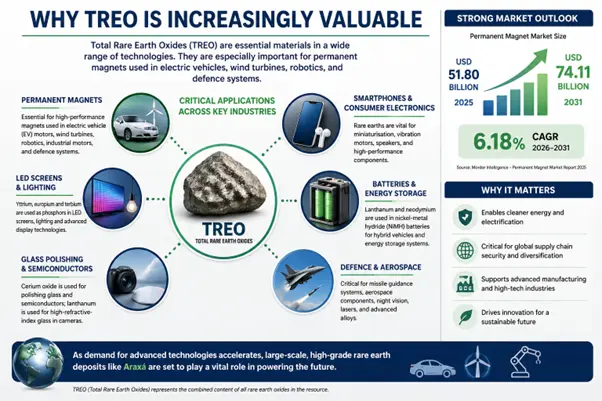 Total Rare Earth Oxides (TREO) are essential to many high-growth industries.