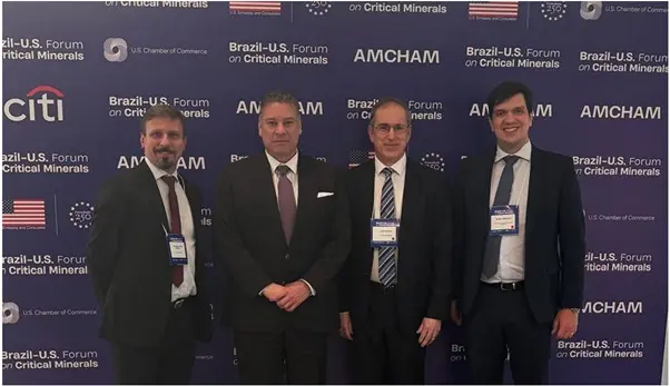 Figure 5: St George representatives at the Brazil-US Critical Minerals Forum. From left to right: Thiago Amaral (Director and Country Head, St George Brasil), Gabriel Escobar (Chargé d’Affaires, US Embassy Brasília), John Prineas, and Daniel Guimarães Medrado de Castro (Undersecretary of Investments Promotion and Value Chains, Minas Gerais State). [St George Mining Limited]