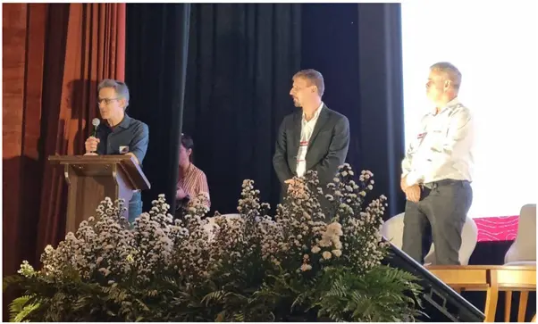 Figure 1: Minas Gerais Governor Romeu Zema speaks at the St George Open Day and Critical Minerals Forum in Araxá, with St George’s in-country leaders Thiago Amaral and Adriano Rios. [St George Mining Limited]