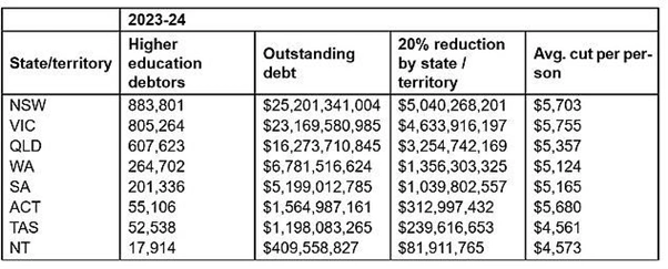 Minister for Education Jason Clare stated, “We promised we would cut your student debt by 20% and we have delivered. This is a big deal for 3 million Australians. This will save millions of Australians thousands of dollars. The average student debt today is $27,600, this will cut that debt by $5,520”.
