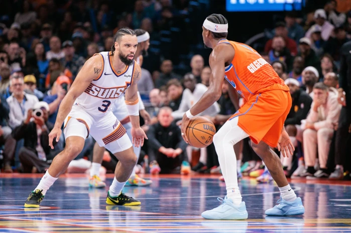 Devin Booker missed his third consecutive game with a strained right groin. The Suns’ star had scored 21 points in the previous matchup against Oklahoma City on 28 November 2025, a 123-119 Thunder victory.
