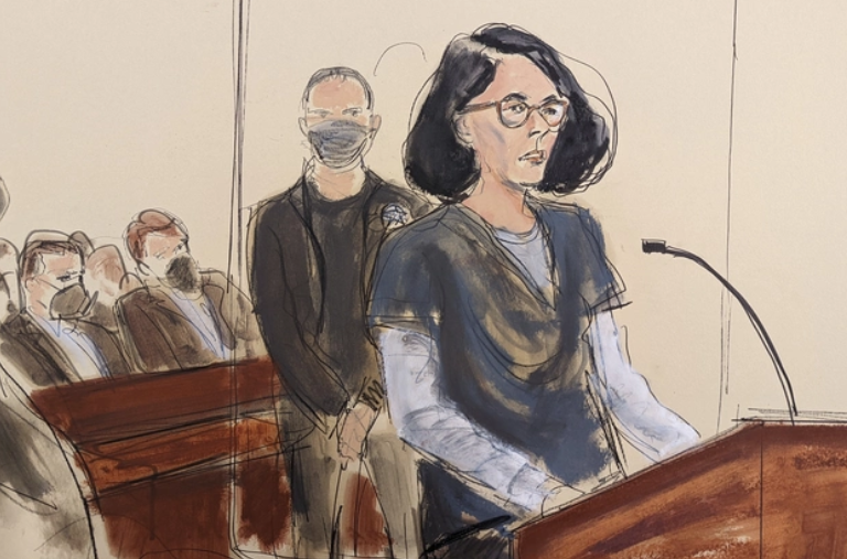 Ghislaine Maxwell during her sentencing hearing, where she received a 20-year prison term for aiding Jeffrey Epstein