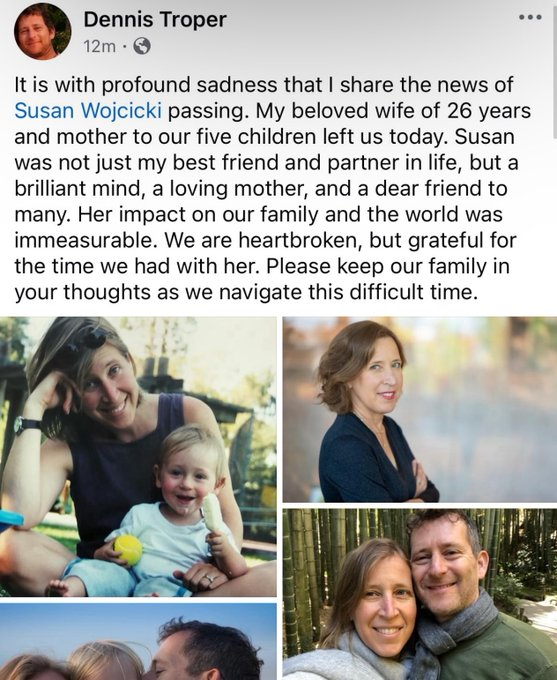 Dennis Troper, Wojcicki’s husband of 26 years, shared the news on Facebook. He described her as his best friend and a brilliant mind and loving mother to their five children. “Susan was not just my best friend and partner in life, but a brilliant mind, a loving mother, and a dear friend to many,” Troper wrote. He also acknowledged her immeasurable impact on their family and the world. He requested that their family be kept in his thoughts as they navigate this difficult time.