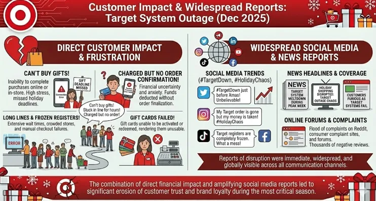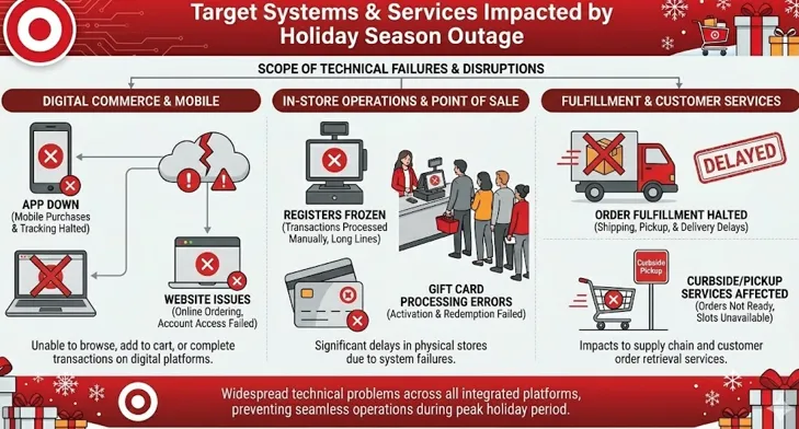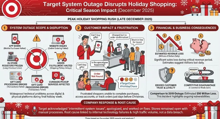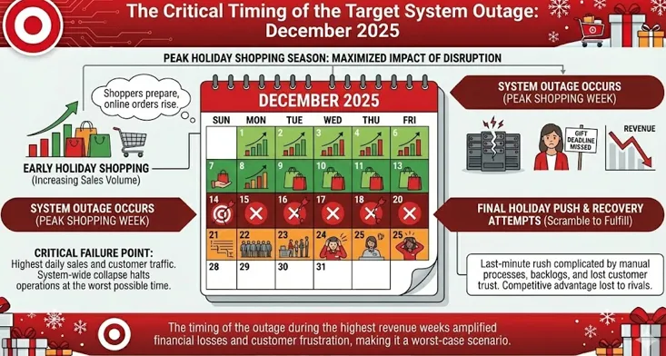 Target’s outage disrupted a critical revenue period for the retail giant. The company’s ability to process, fulfil, and track orders deteriorated precisely when customer demand reached peak levels. Late-season shoppers depended on fast shipping and reliable digital services to meet holiday deadlines.