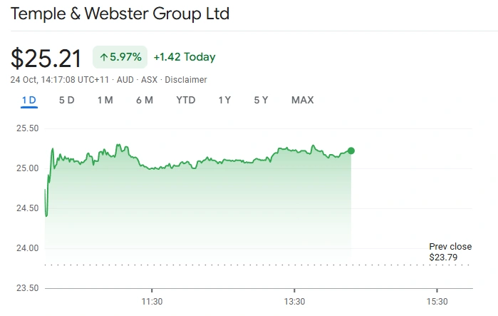 Shares in Temple & Webster Group Ltd (ASX: TPW) climbed 5.6% amid growing investor confidence ahead of the company’s upcoming trading update. Bell Potter upgraded the stock to a buy, setting a target price of $28. The brokerage cited expected strong first-half performance aligned with consensus estimates and the company’s ability to capture increased market share. The online retailer has expanded its total addressable market, leveraging pricing and scale advantages supported by a solid balance sheet. Temple & Webster shares traded at $25.12, attracting buyers anticipating further gains.
