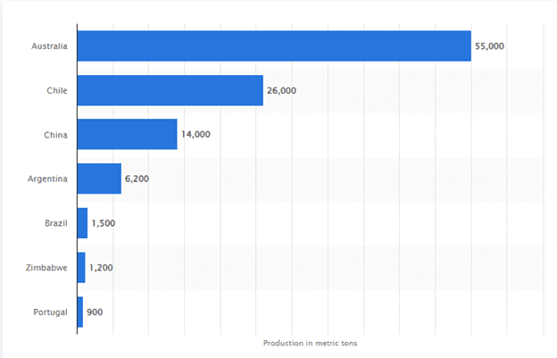 Australia positioned itself as the world’s go-to lithium supplier, home to many hard-rock, pegmatite-hosted lithium resources, mainly in Western Australia. The country has the third-largest lithium reserves and is the largest producer of hard-rock lithium, Spodumene.