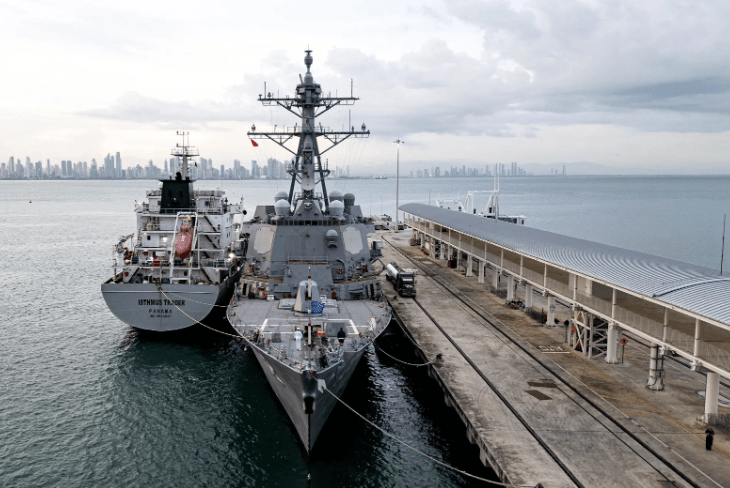 Figure 1: U.S. Navy warship docked in the Caribbean