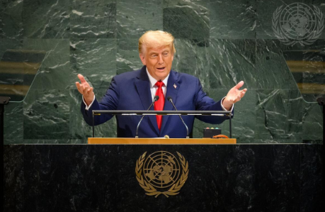 Trump addressing the UN General Assembly, with delegates from 193 member nations in attendance