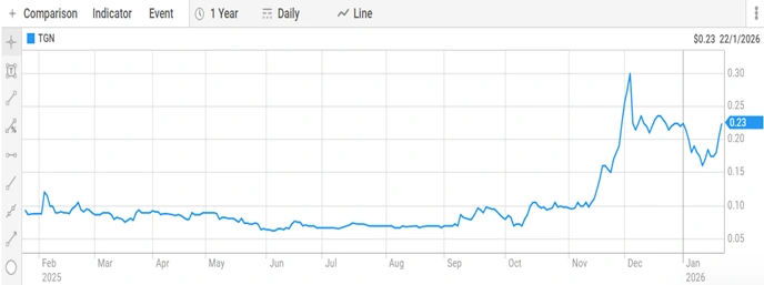 Figure 3: Tungsten Mining NL (ASX: TGN) one-year share price performance chart [ASX]
