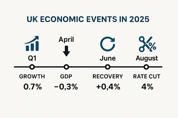 Figure 2: UK Economic Timeline 2025 showing key milestones and turning points