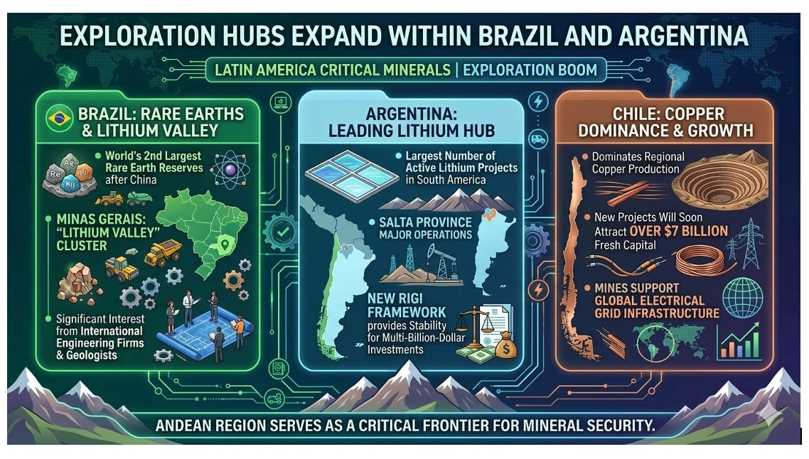 Brazil and Argentina serve as the primary destinations for this capital. Brazil hosts the world’s second-largest rare earth reserves after China. The Minas Gerais region now carries the moniker Lithium Valley. This cluster attracts significant interest from international engineering firms and geologists.