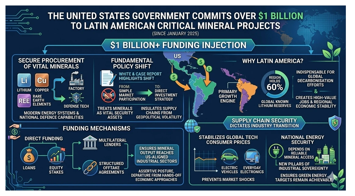 The United States Government has committed over $1 billion to critical mineral projects across Latin America since January 2025. This capital injection targets the secure procurement of lithium, copper, and rare earth elements. These materials remain essential for modern energy systems and national defence capabilities.